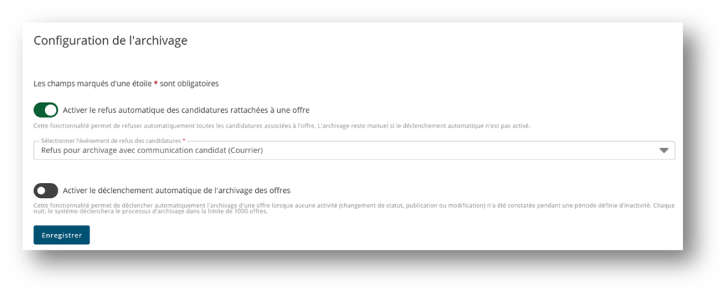 Nous vous proposons deux actions rétroactives, à choisir selon votre décision d’automatiser ou non l’archivage des offres :