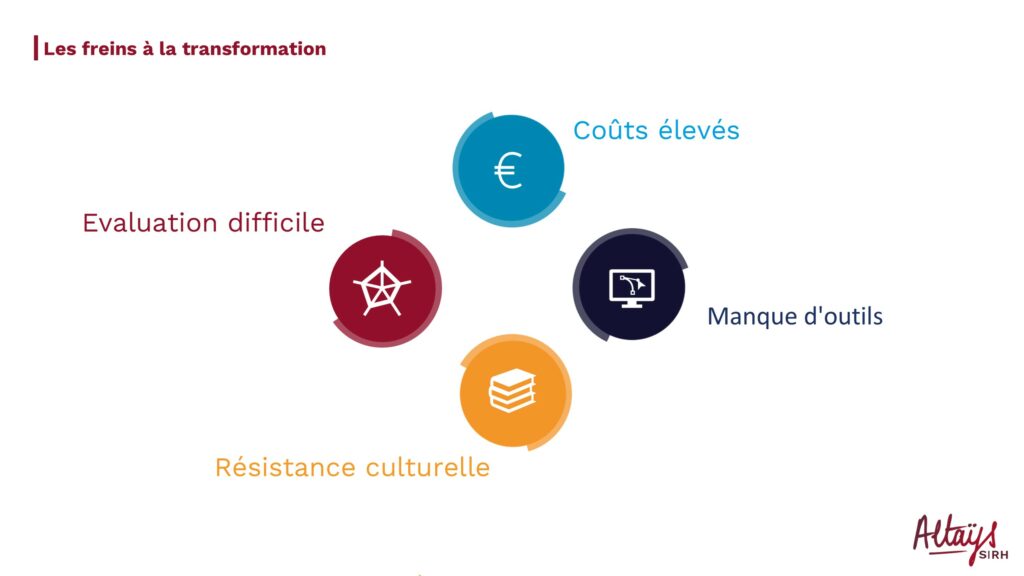 Oui, il y en a un dernier qu’on a appelé la résistance culturelle je ne dirais pas que c’est un frein pour mettre en place le pilotage de la compétence, c’est surtout un frein pour en bénéficier pleinement. Il y a des barrières qu’on peut s’imposer en terme de mobilité par exemple. On peut avoir tous les outils du monde mais ne pas arriver à imaginer que telle personne sur tel poste puisse aller sur un poste totalement différent sur une filière d’activité totalement différente alors que c’est possible. Moi par exemple j’ai commencé ma carrière chez Axxa France dans les ressources humaines et j’ai participé à faire en sorte que des chefs de projet informatiques deviennent des souscripteurs en assurance. Il y a des choses possibles si on arrive à lever ces barrières. Rationnaliser avec ce degré d’analyse qu’est la compétence, ça permet de le faire.