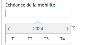 Un second champ lui permet de définir son projet dans le temps. La cible est définie par un coupe trimestre / année.