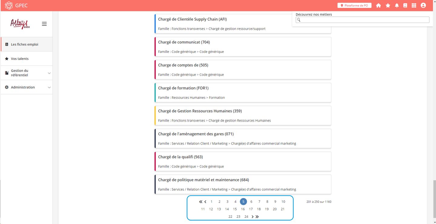 L’affichage des fiches emploi n’est plus limité à 50 résultats, les résultats suivants sont désormais accessibles via un système de pagination.