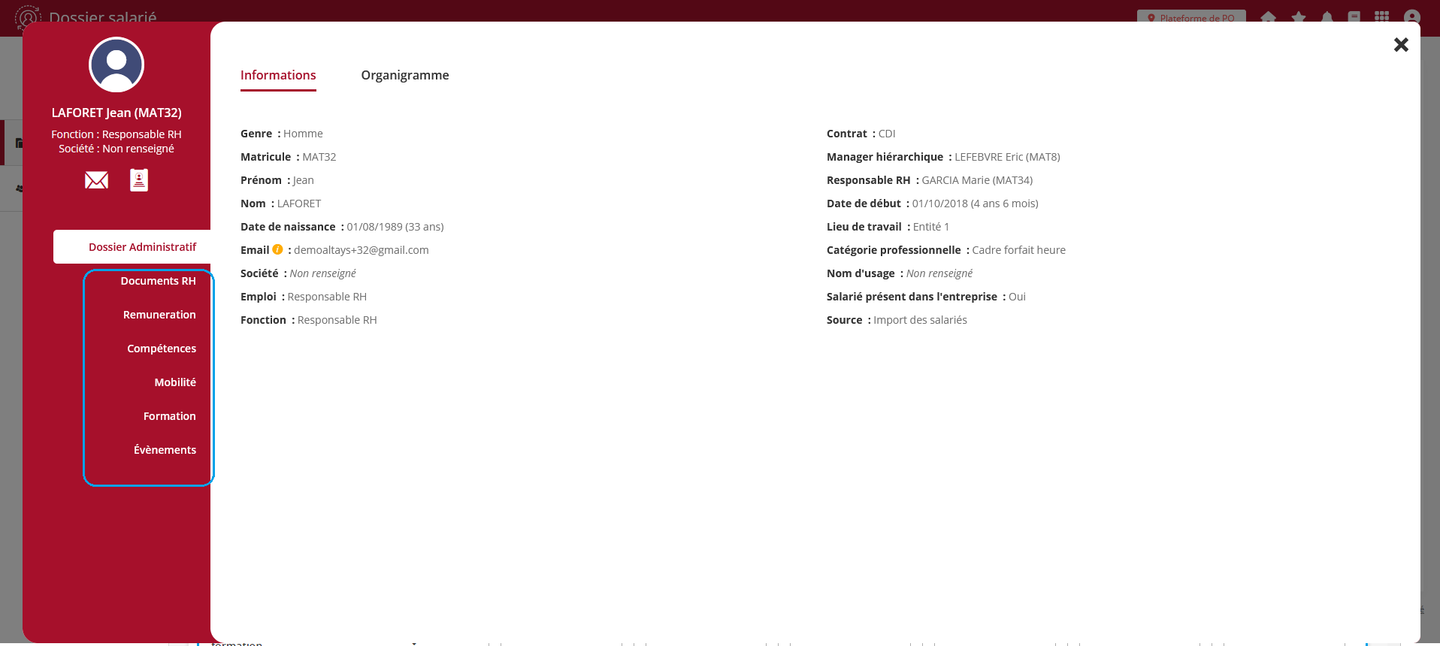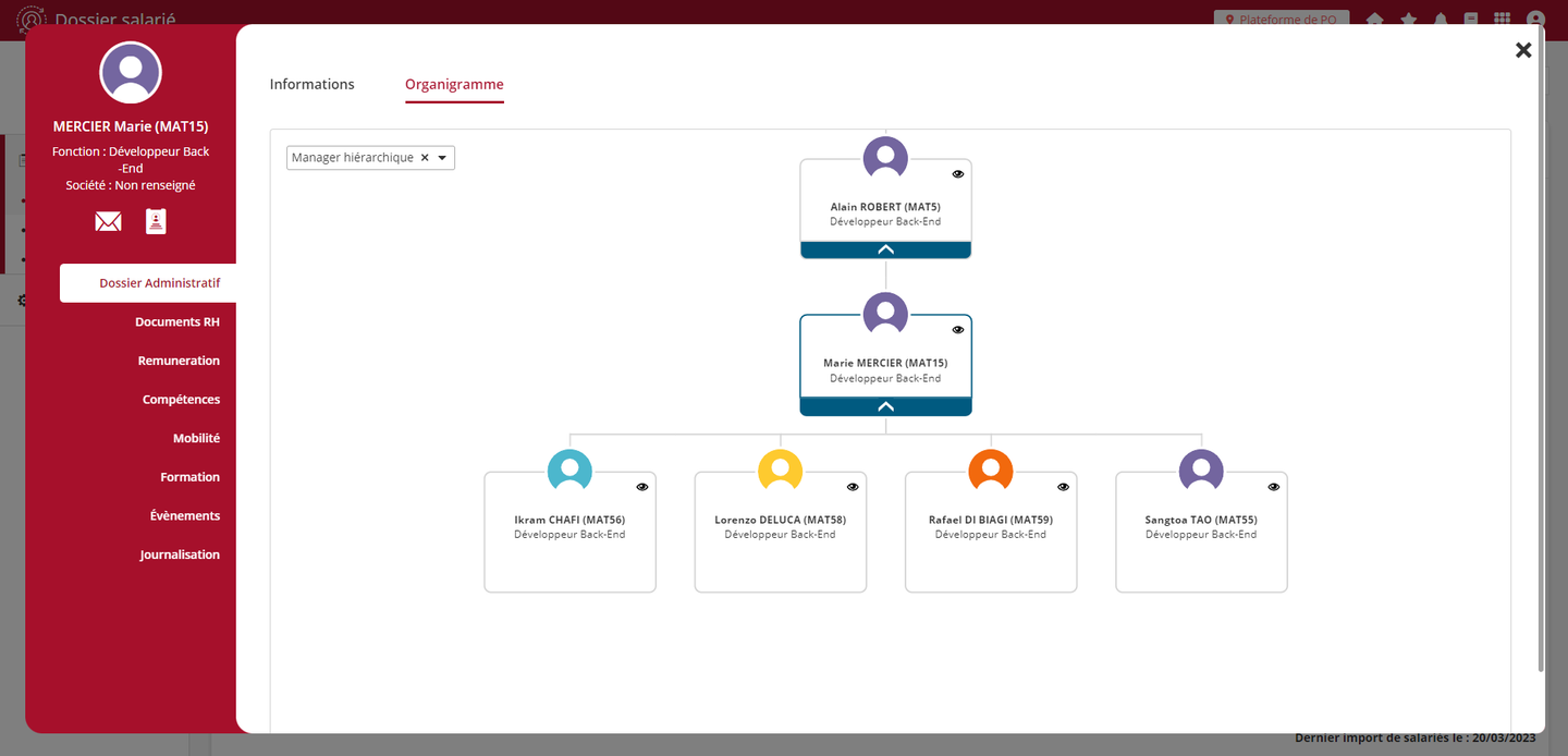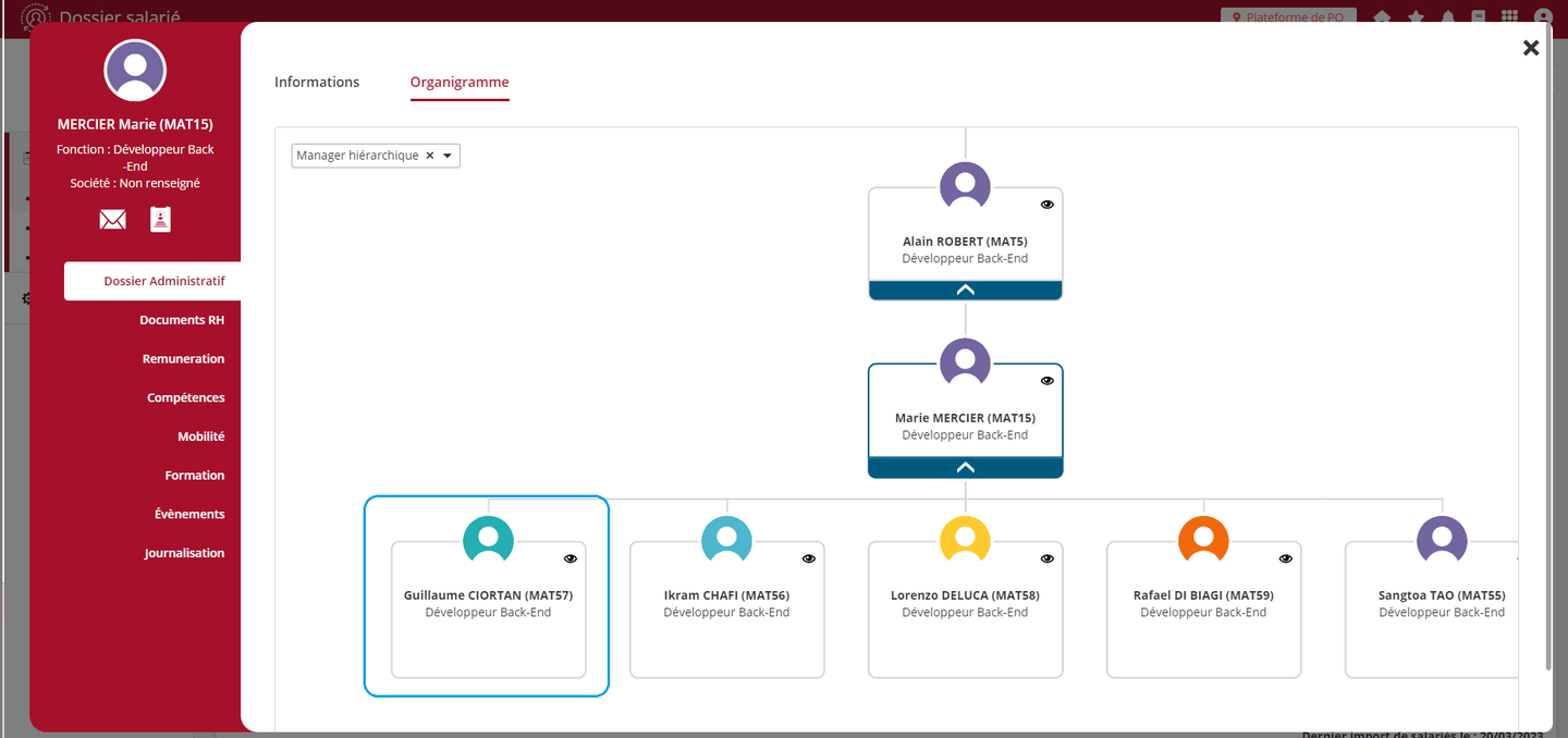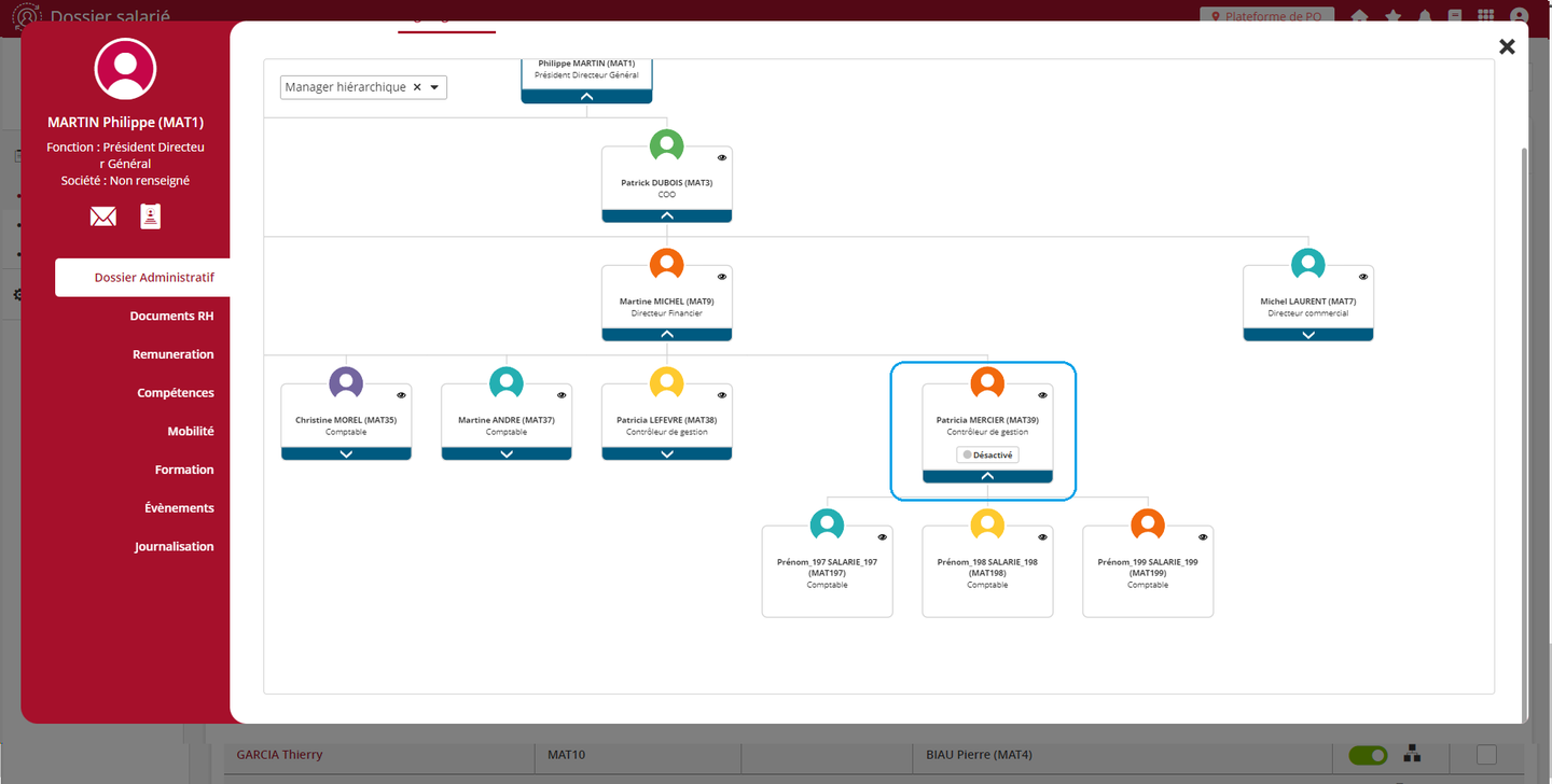 Les règles d’affichage de l’organigramme proposé dans la fiche collaborateur évoluent pour ne plus afficher les collaborateurs désactivés.
