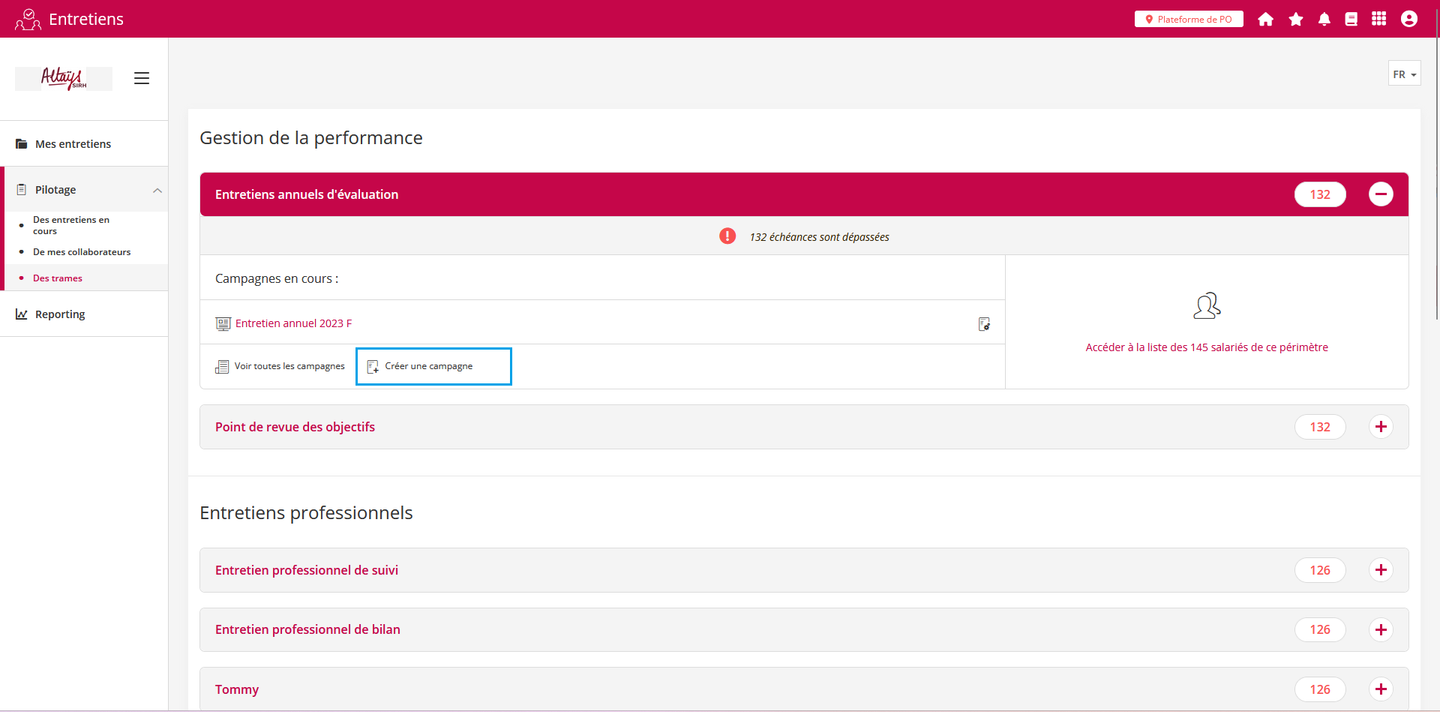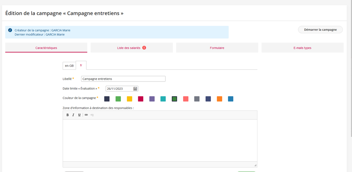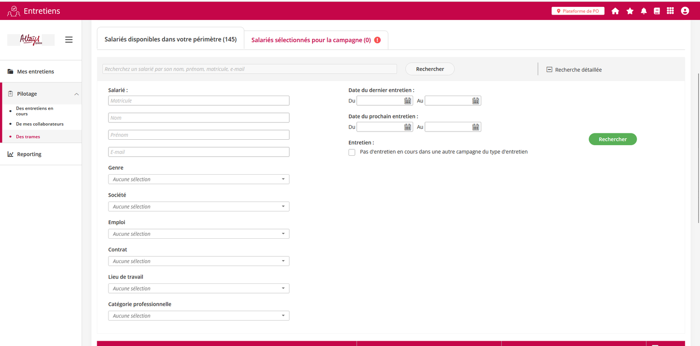 Le superviseur peut alors créer une campagne de la même manière qu’un administrateur. Il ne peut cependant ajouter dans le panier d'éligible que les collaborateurs éligibles à la trame et appartenant à son périmètre.