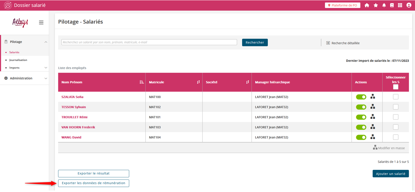 Depuis la page de Pilotage> Salariés :