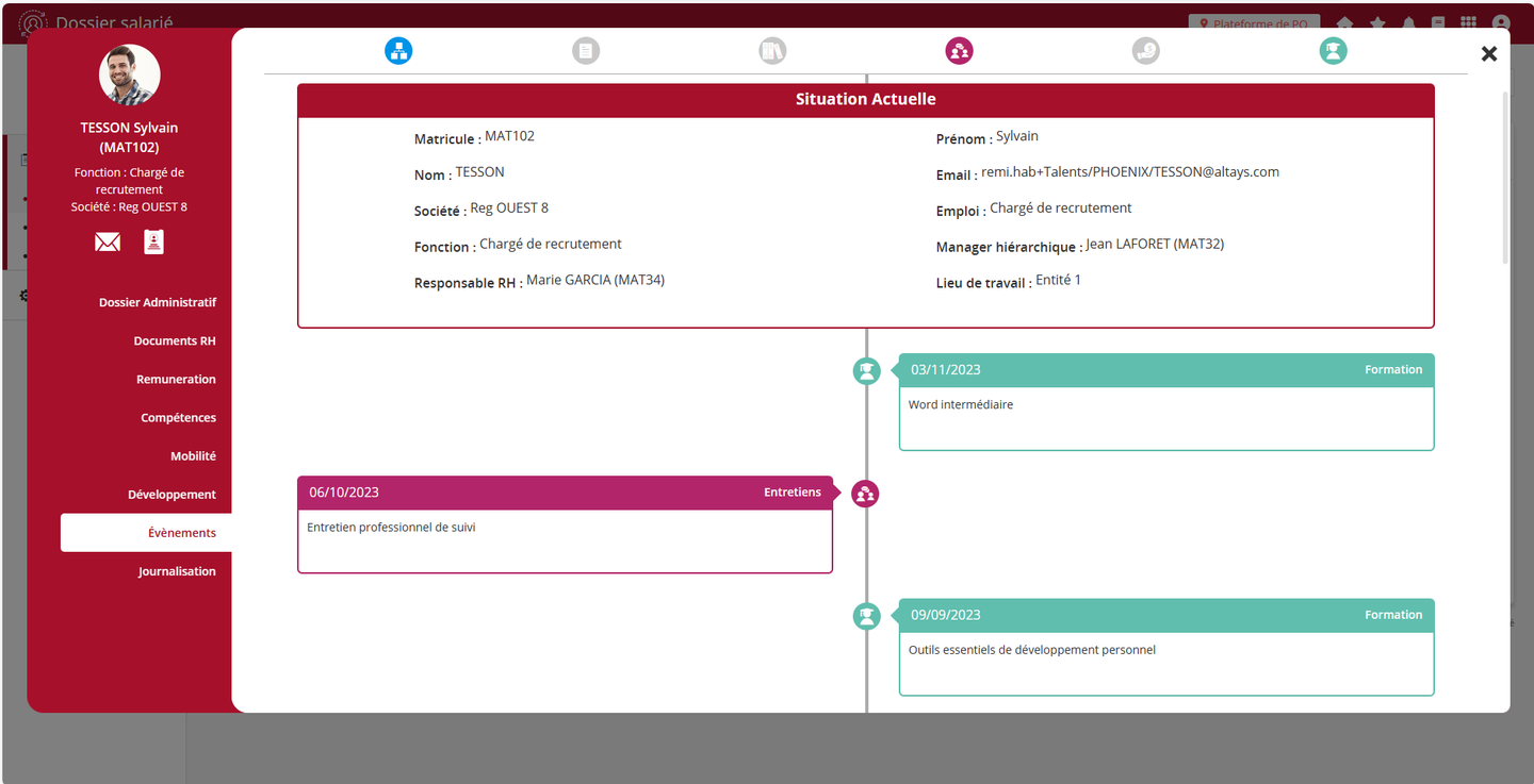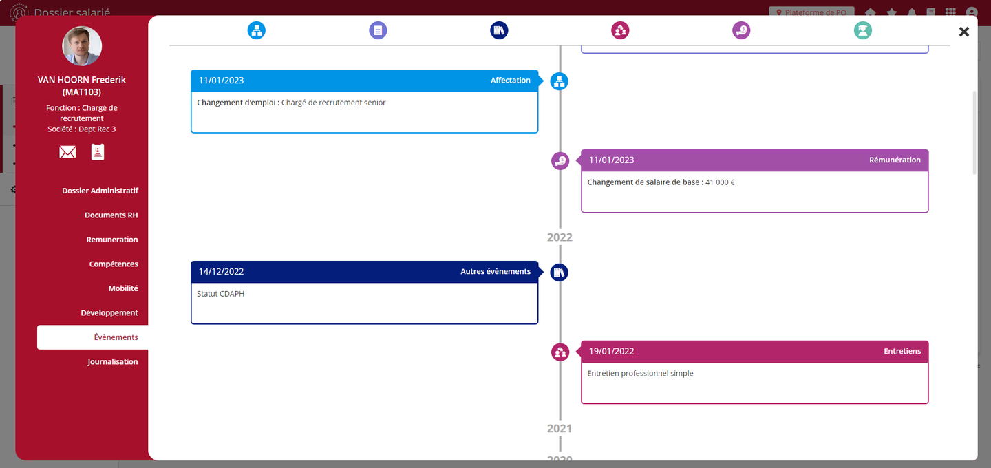 Le fil des évènements du dossier des salariés est désormais alimenté automatiquement par deux processus de l’application: