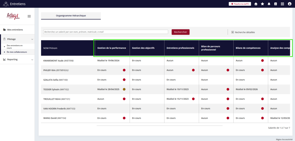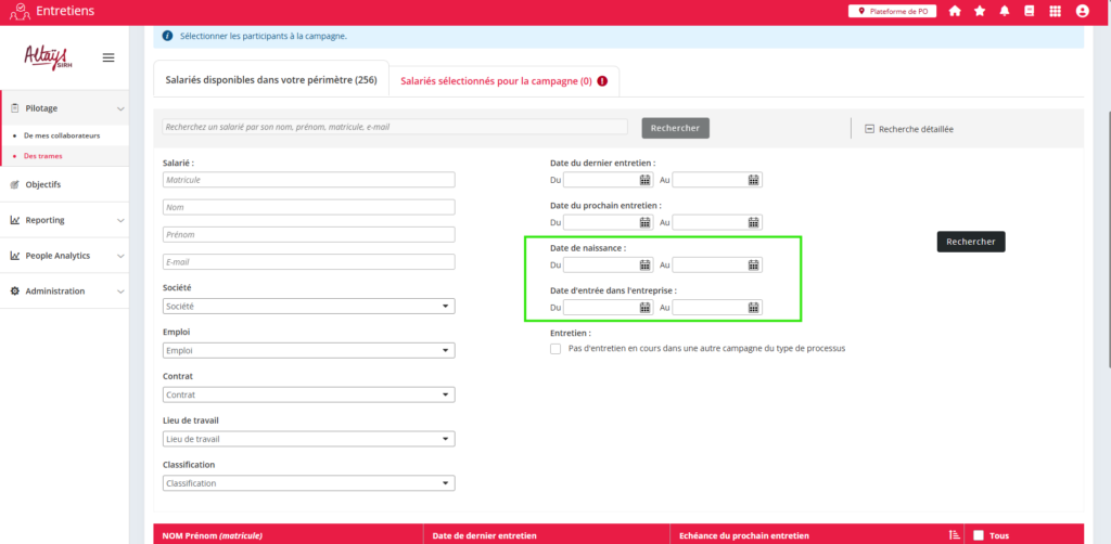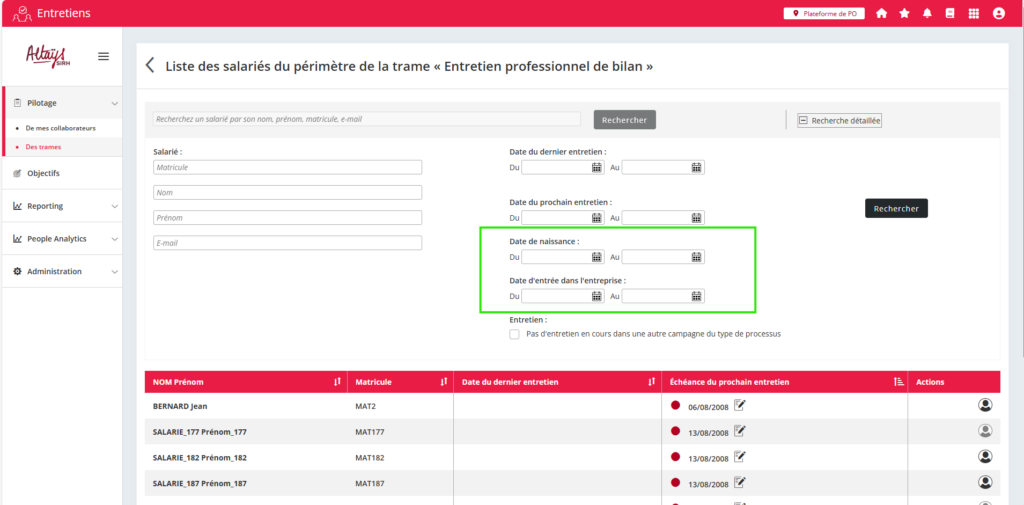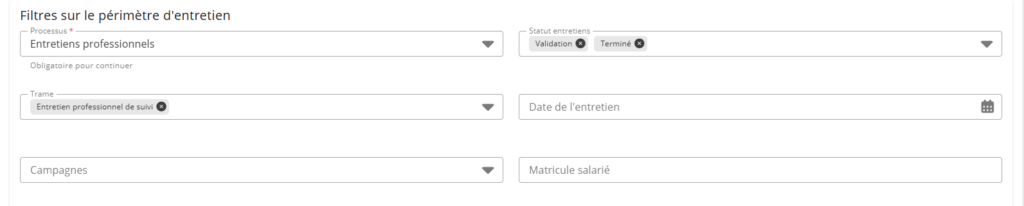 Ces deux filtres trouvent une utilité particulière dans le cadre de la gestion des entretiens de parcours professionnels, qui nécessitent notamment de réaliser des entretiens dans l’année d’embauche du collaborateurs mais également à plusieurs étapes de sa carrière.