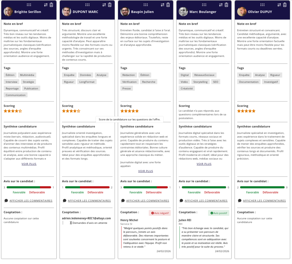 Une fois configurés, ils s’affichent dans le tableau des candidatures ainsi que dans les résultats de recherche, pour une lecture encore plus rapide et intuitive.