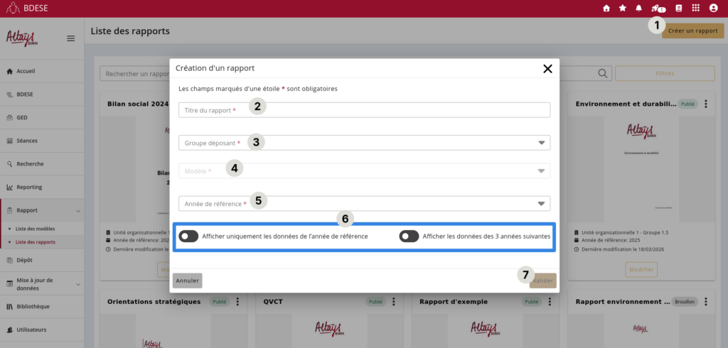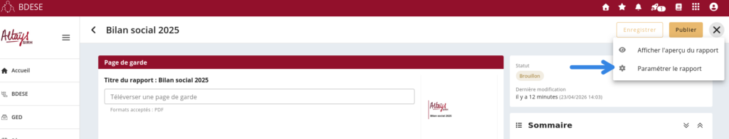 Tant que le rapport est au statut brouillon, il est possible de modifier le paramétrage afin par exemple de changer les années affichée.