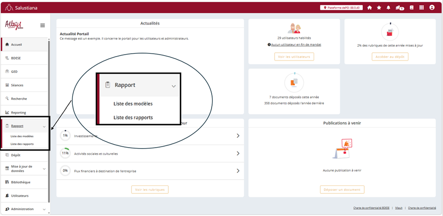 Depuis le menu Liste des rapports, les déposants accèdent aux rapports de leur périmètre.
