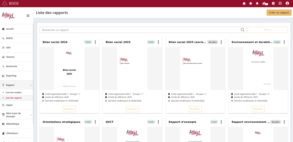Une nouvelle fonctionnalité est disponible dans votre BDESE. Vous avez désormais la possibilité de créer vos propres rapports, afin de les publier dans votre BDESE, dans votre GED ou de les télécharger pour les mettre à disposition en interne (CODIR, direction financière…).