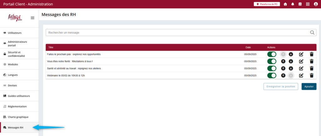 Pour paramétrer ces messages, un nouvel espace d’administration simple et ergonomique est mis à disposition. Il comporte :