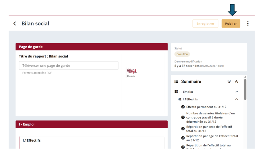 En arrivant sur la structure du rapport, le déposant voit le contenu des indicateurs en fonction du paramétrage défini. Il est possible que des indicateurs n’aient pas de données. Dans ce cas, il est averti de la situation.
