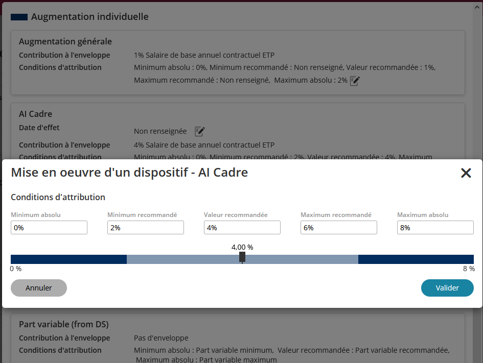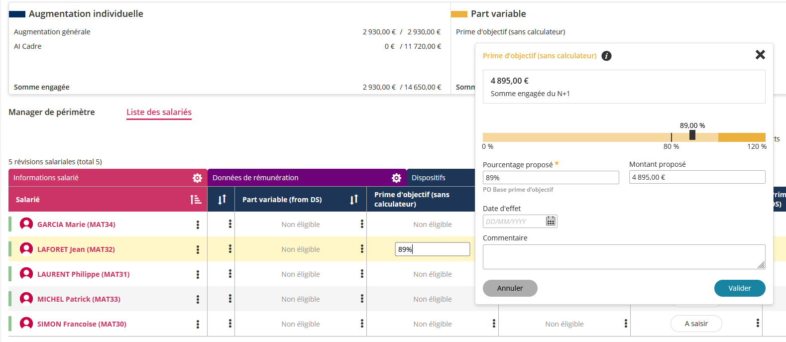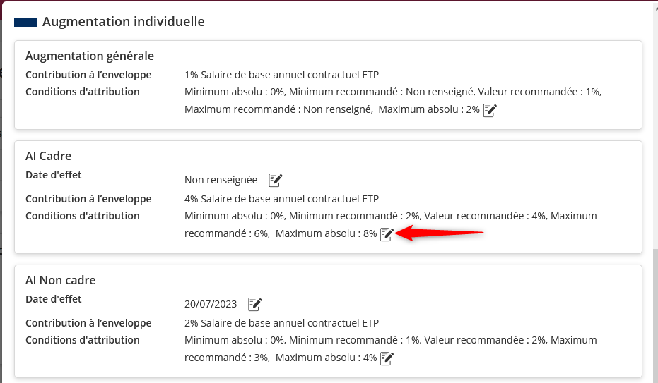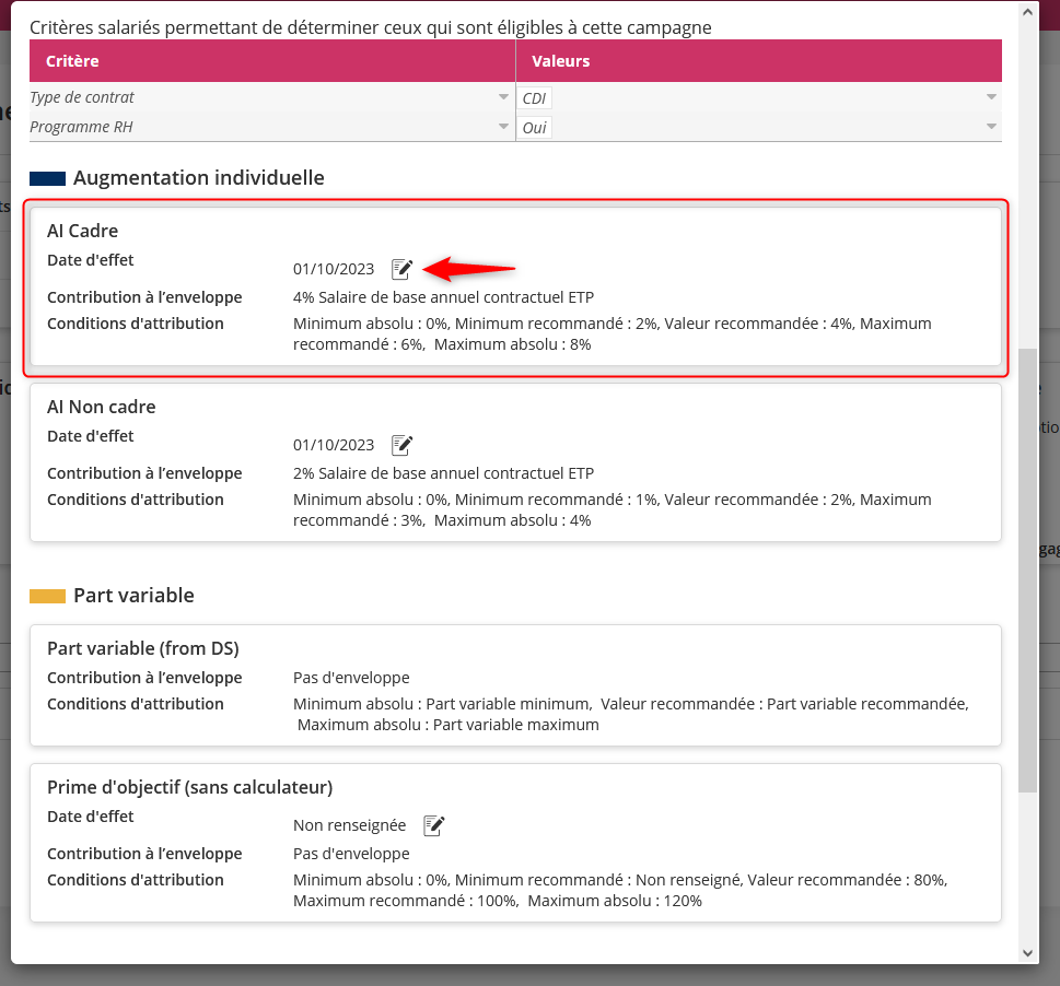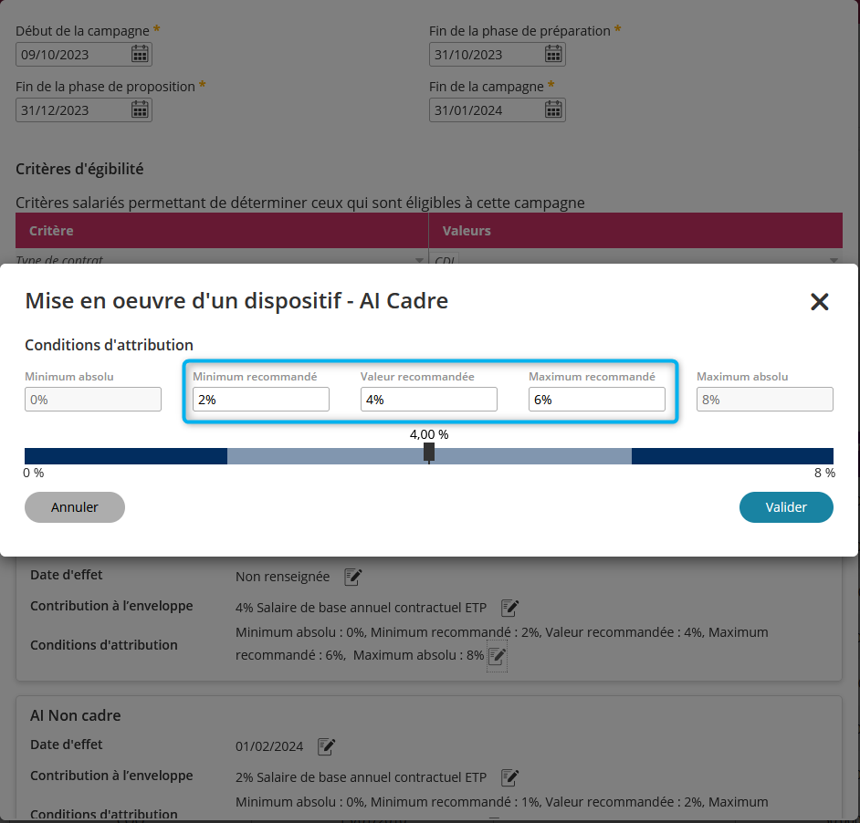 Un champ de saisie rapide est désormais disponible directement sur le tableau des révisions salariales de la campagne.