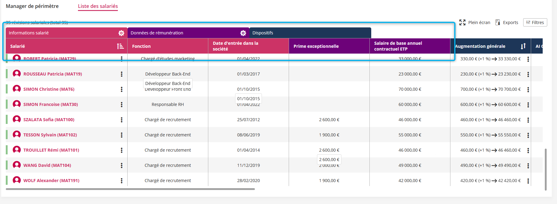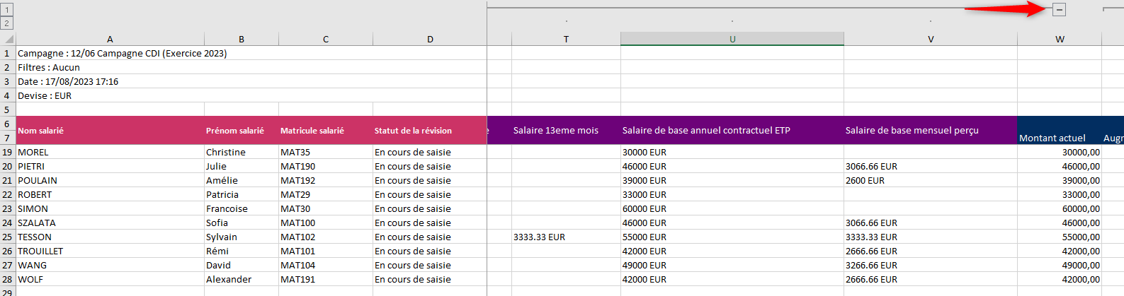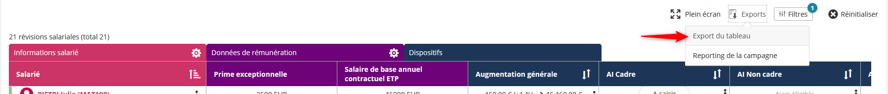 Toutes les données de rémunération ont été ajoutées dans l’export des révisions salariales (technique pour les administrateurs uniquement).