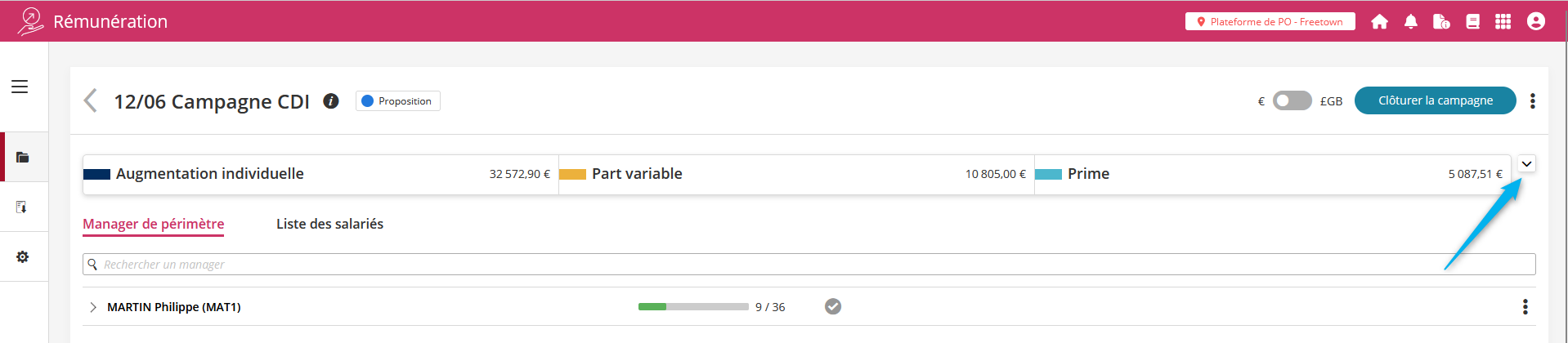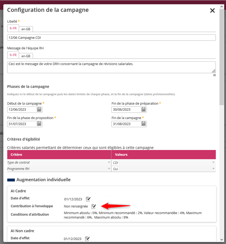 Pendant la phase de préparation et même la phase de propositions, lorsque vous modifiez la contribution à l’enveloppe, toutes les enveloppes sont recalculées.