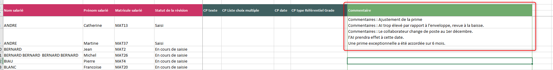 Egalement, les commentaires ont été ajoutés en fin de Révision salariale.