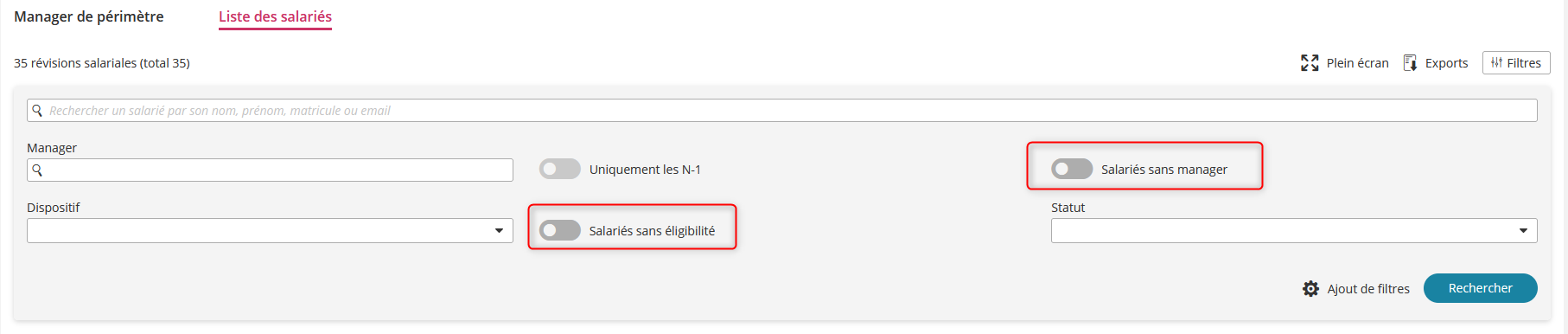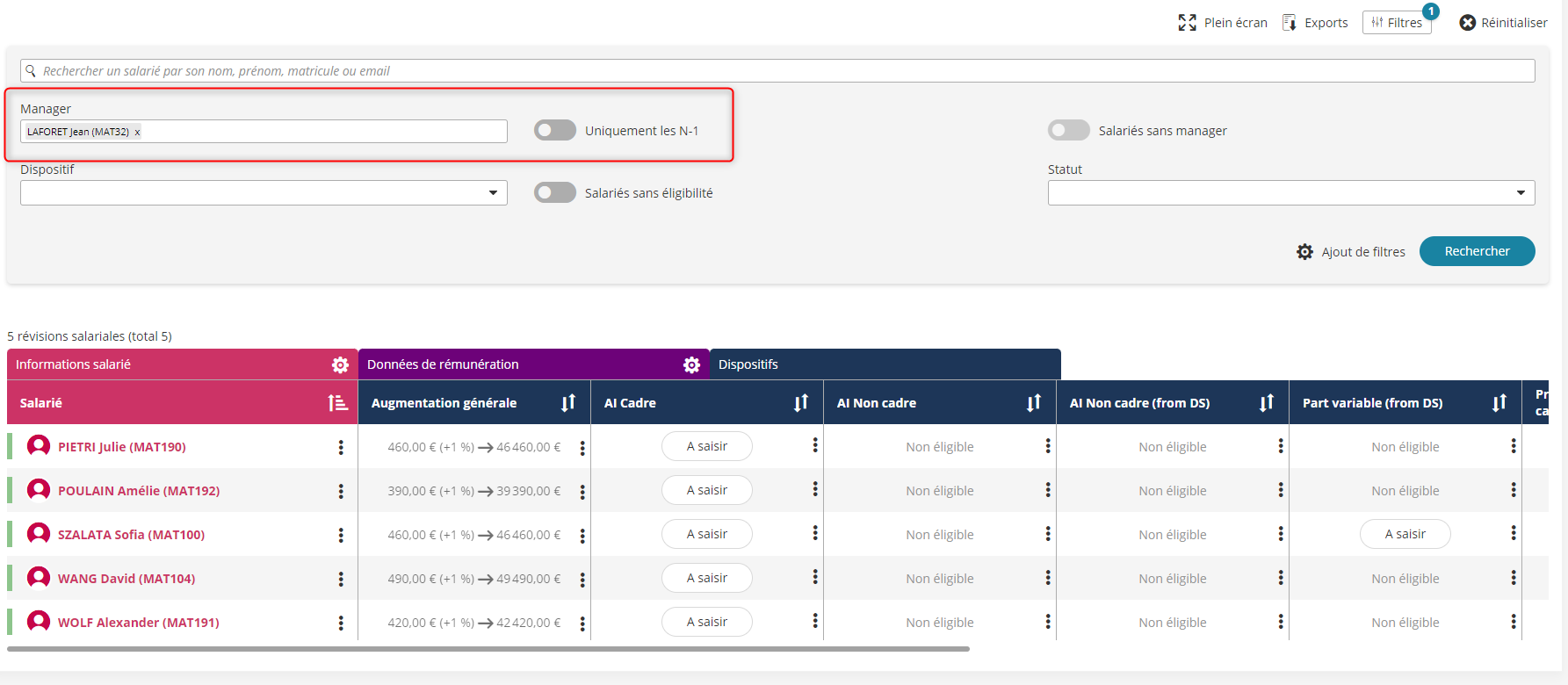 Il est désormais possible pour un superviseur de chercher les révisions salariales par manager, que celui-ci fasse partie ou non de son périmètre.