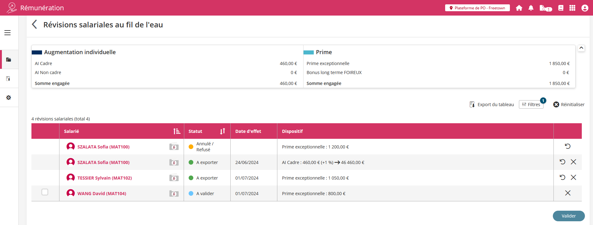 L'écran des révisions salariales au fil de l’eau avait un temps de chargement assez long. Grace à une amélioration des performances, l’affichage de la liste est maintenant plutôt confortable.