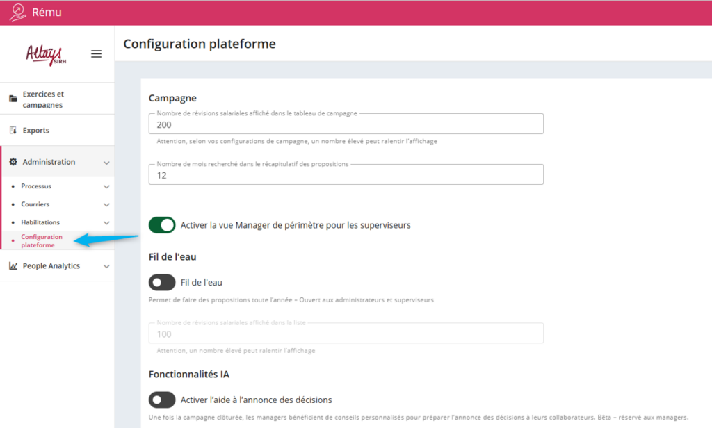 Une nouvelle page de configuration fait son apparition dans Administration > Configuration plateforme.